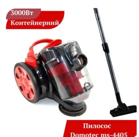 • Контейнерний пилосос Domotec MS 4405 циклонного типу без мішка для збирання пилу. Пилозбірник об'ємом 3 літри легко миється й чиститься, досить лише дістати контейнер, викинути сміття і за потреби вимити його. Стильний дизайн поєднується з компактними розмірами та легкою вагою 5 кг, спрощуючи прибирання й заощаджуючи місце. Завдяки потужності двигуна 3000W і потужності всмоктування 700 ватів, прибирання стане простішим і набагато швидшим. Має мийний пластиковий фільтр. Довжина шнура 3 метри. Зручна телескопічна труба, необхідні насадки, кнопка змотування шнура.