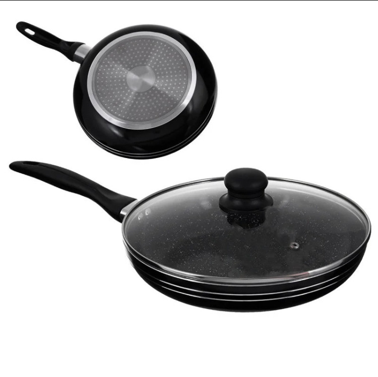 -Корпус сковороди виготовлений із високоякісного литого алюмінію з потовщеним дном, що забезпечує швидкий і рівномірний розподіл тепла.
