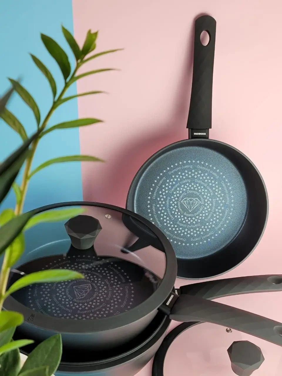 - Алмаз славиться своєю міцністю, завдяки чому сковорода з подібним покриттям буде дуже надійною та довговічною.